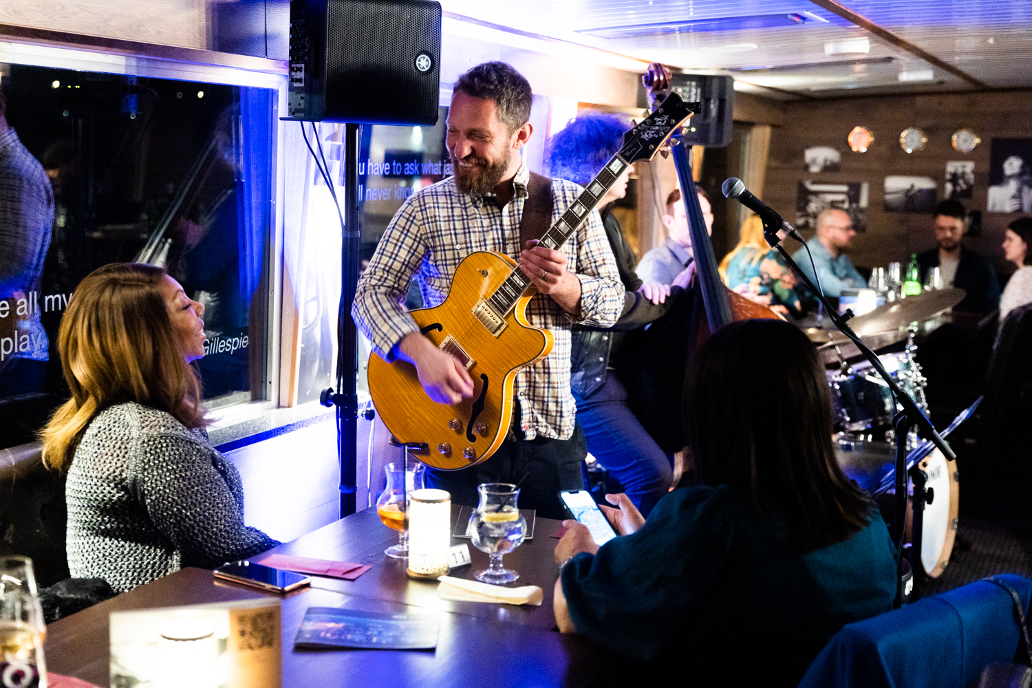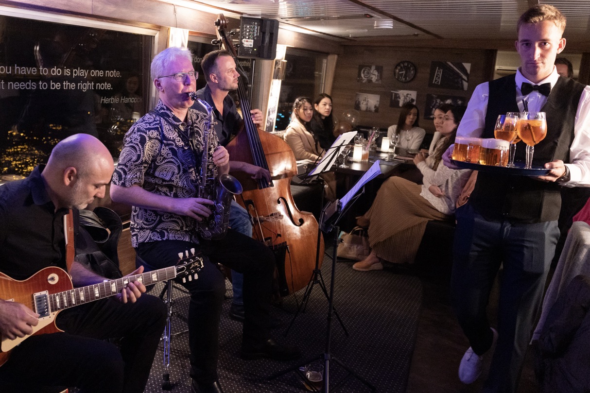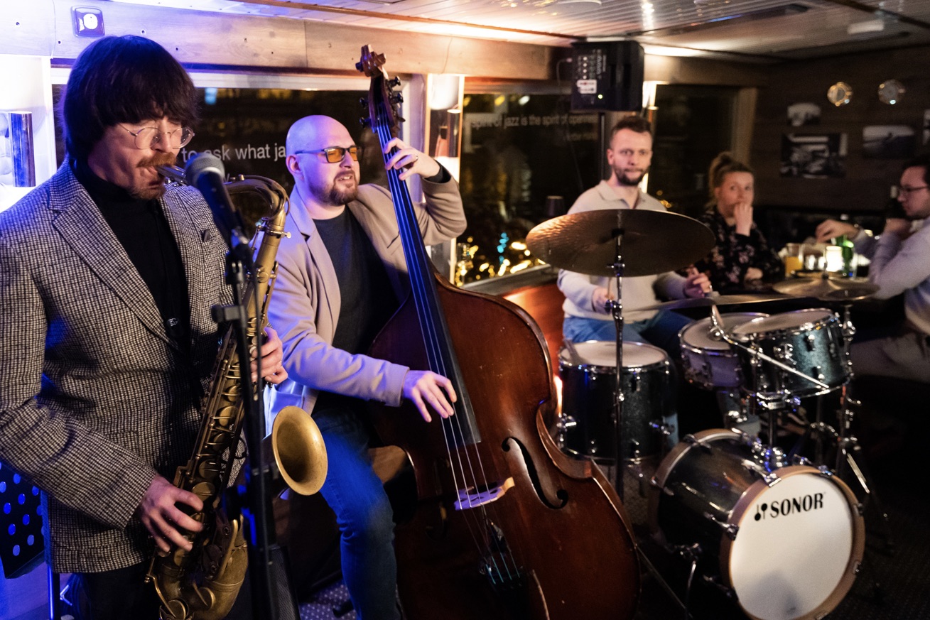 Live Jazz Performances. Each evening features a different jazz style performed by highly accomplished Czech musicians. The concerts consist of three sets with two breaks, offering a varied musical experience. The stage is located inside the boat, and the music is also broadcast to the upper deck via speakers.